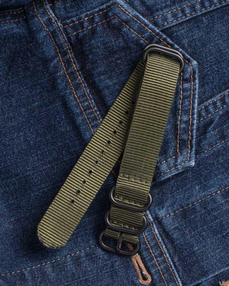 Our NATO straps are made from a tightly woven nylon fabric with a silky finish. Extremely durable and comfortable to wear. Finished with laser sealed holes and heavy duty, brushed stainless steel silver buckle.